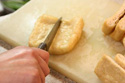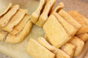 - すし揚げ(4〜5枚)を半分に切り、切り口から破らないようにゆっくり開けます。
