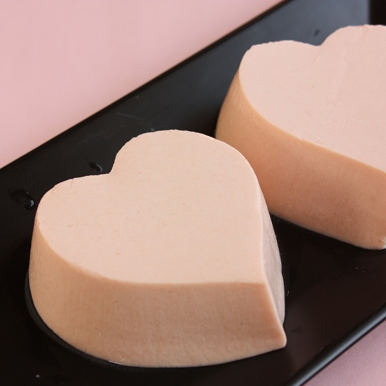 京とうふ藤野では毎年バレンタインデーの季節だけに、ピンク色のハート型のおとうふをつくっています。