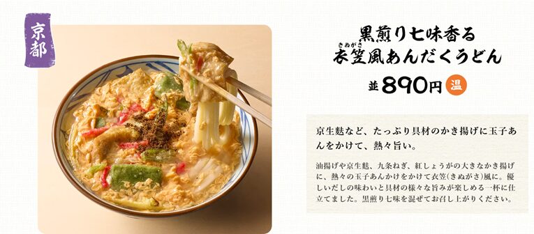 京都の「黒煎り七味香る 衣笠風あんだくうどん」に、